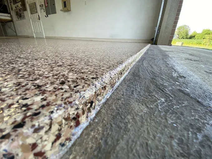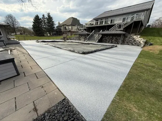 See our exceptional epoxy flooring transformations—from high-traffic garages to elegant patios.